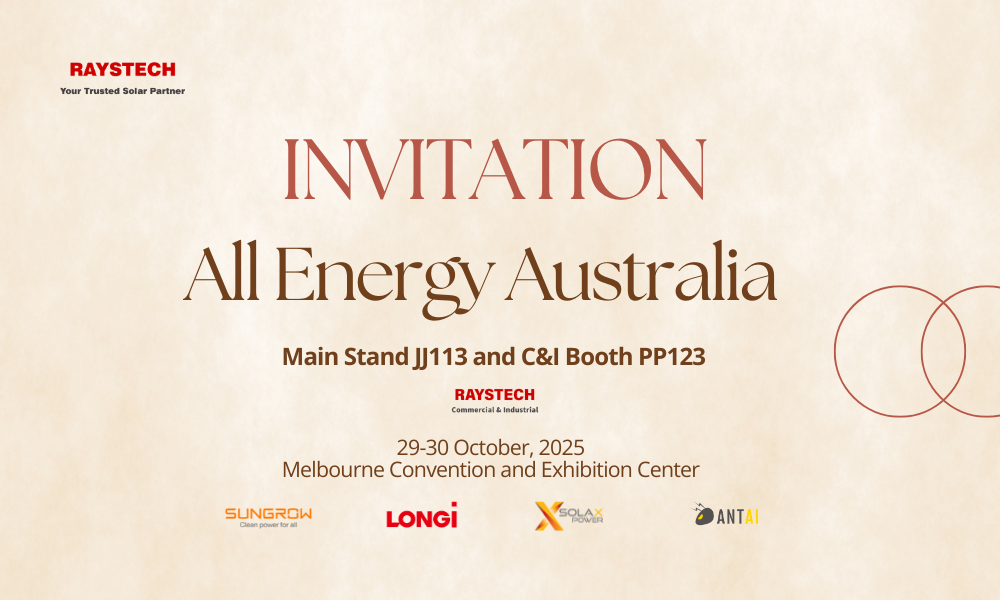 At Raystech, we are committed to providing high-quality products and exceptional service across residential, commercial, and industrial energy markets. Visiting us at All-Energy Australia 2025 is your opportunity to learn how we are powering a greener, more sustainable future.