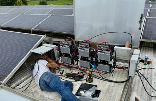 Many tenK projects have a microinverter architecture different from other flat rooftop projects, because they were grouped together in what is called a redundant inverter bus (RIB). That orientation makes them operate as a single unit. In the initial repowering projects, old failing RIBs were removed and replaced with NEP microinverters. Those legacy solar projects now have the bonus of microinverter-level monitoring showing real-time production.